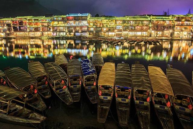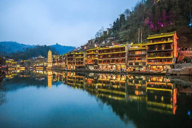 优点:这些客栈紧挨着沱江,风景如画、舒适惬意。凤凰古城的吊脚楼都在沱江的二岸,但分为上游、中游、下游,建议选择中游的位置最好。