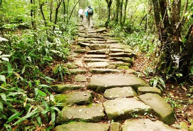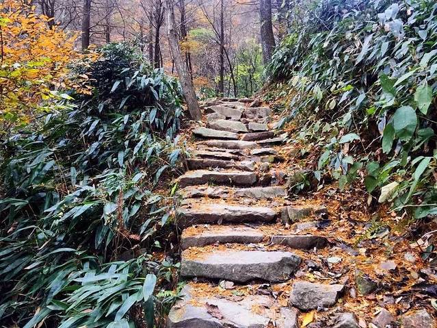 顺便发一些其他景点照片给驴友看一看,【吴越古道】全长约35公里,为五代十国时期吴越(杭州临安)与南唐(宣城宁国)的主要通道。顺吴越古道石板路台阶而上,一路溪流陪伴,瀑布奏鸣,曲径通幽,跌宕起伏,天地人合一,似在画中游。约2—3个小时到达千倾关,千顷关为两块巨大而光滑的花岗岩构成,像门一样挡在眼前,这一处天然石门,高近4米,厚约3米,宽可两人并行,其势“一夫当关,万夫莫开”。登上石门,拔开石墙上面的杂枝,曼延起伏的两翼石墙,是古城墙防守工事 。