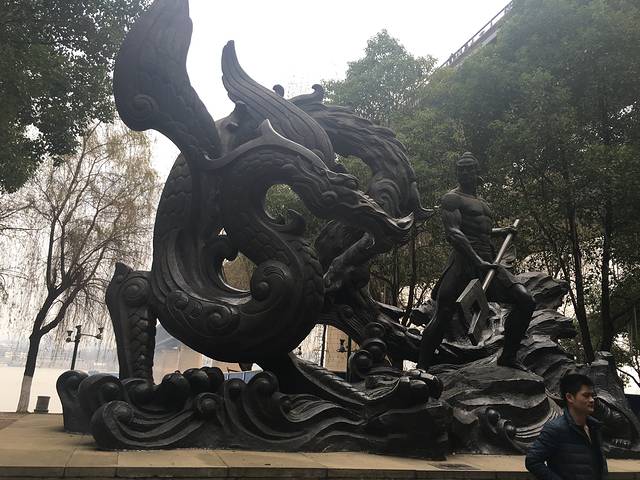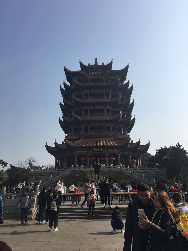 找到酒店住下后就去黄鹤楼,在网上订的酒店和门票,偏偏只能从南门进,两个人在外面绕着公园走了一圈终于进去了