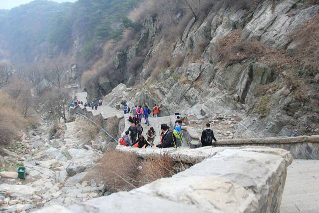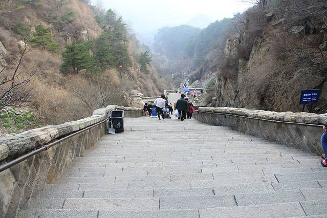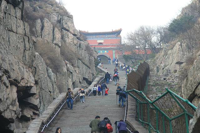 爬山入口有几个选择的,可以从岱庙开始,可以从红门开始,可以从中天门开始,从中天门出发的 人比较多,应该是这里风景到山顶这段距离是最美的~