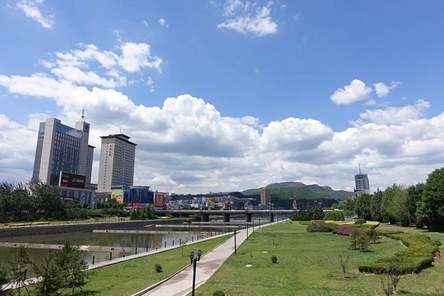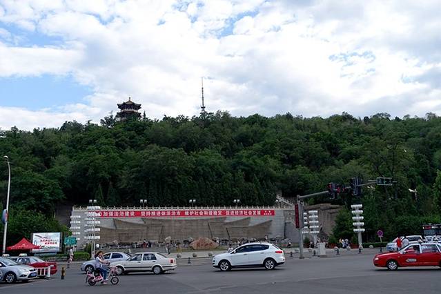 6月14日从阳泉到吕梁市方山县,主要是为了第二天游览北武当山。县城里有一小公园,也没什么特色。后来发现城边上有一小山,是看县城全景的好地方。
