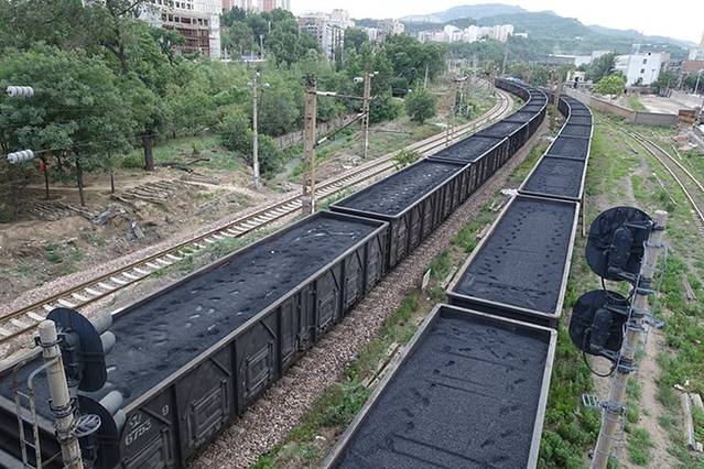 过铁路桥时,正好有运煤车从桥下经过。煤堆上整齐的脚印是做的标记吗?