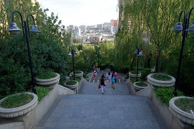 南山公园。远远的看到山顶上有个阁,觉得在那上面看阳泉市市区应该不错。