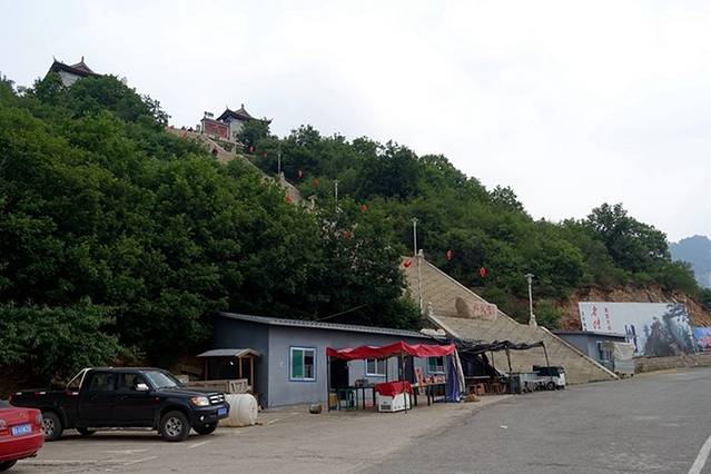 万神庙(第三)停车场,我们的车就停在这里了。前面的小山是烧炉山,烧炉山的主峰叫针子崖,海拔2061米。针子崖上是道教广场,崖下是刚才路过的那个停车场