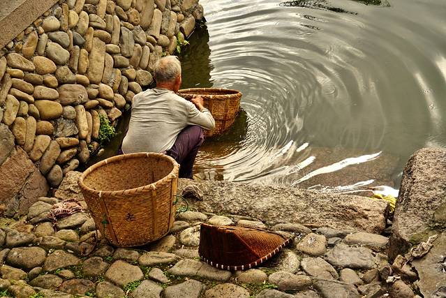 这里溪道两岸红灯高挂,拒绝了市侩习气和商业的烦杂。生活在此处,清淡、安逸而单纯,与嘈杂涣离,与纷乱无缘。踏在古镇的鹅卵石上,脚步也会轻快起来。