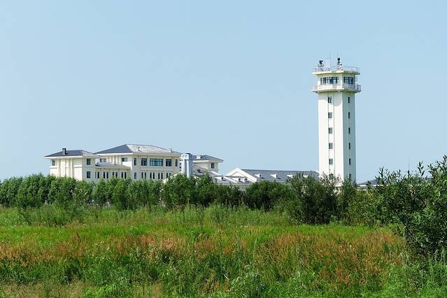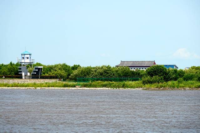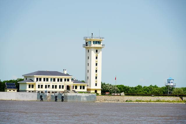 左侧是中方被誉为“东方第一哨”的通江口边防哨所