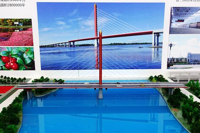 新建的进出黑瞎子岛的乌苏大桥,大桥全长1606米,跨越抚远水道。因位于中国版图最东边,被誉为中国“东方第一桥”。