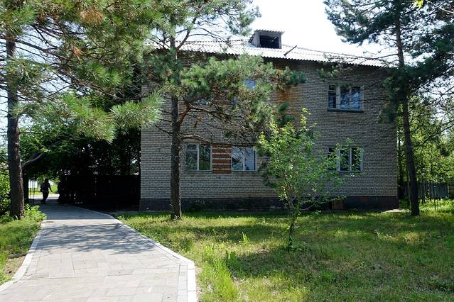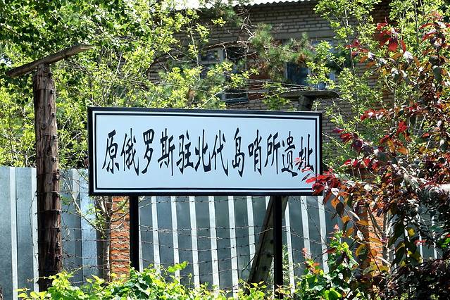 右侧是俄罗斯的一个简易木质的岗亭和维克多教堂。