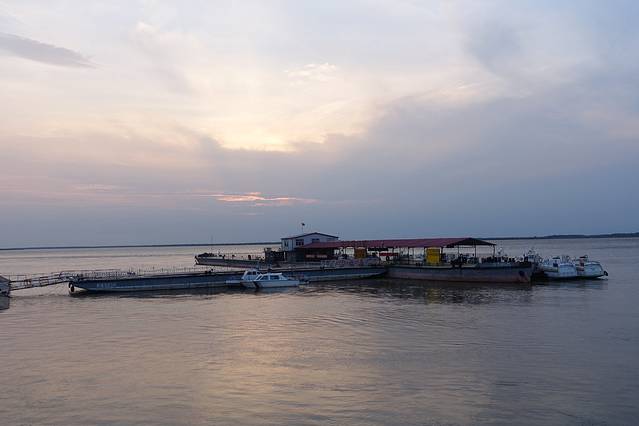 西山公园北侧的黑龙江畔有一个码头,停泊有很多渔船,在这里也可以看到很美的日落。