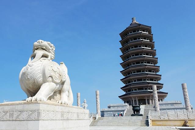 汉唐风格的东极宝塔高81米,九层八角形楼阁式塔身。