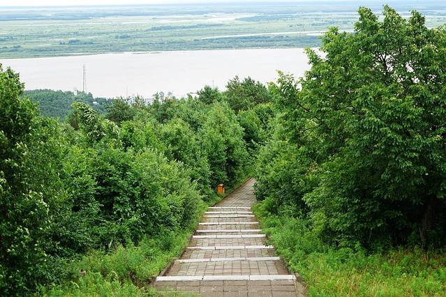 抚远西山公园座落在抚远镇西北隅山崖上,南连抚远山麓,西临清澈的浓江河,北傍湍急的黑龙江。