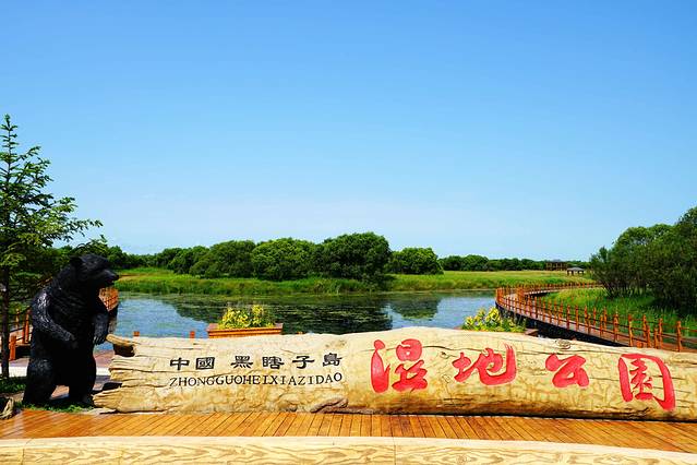 湿地公园是为了保护黑瞎子岛湿地的原生动植物与生态环境,同时也为开发这里的旅游资源而建设的。游客可以比较深入的接近湿地,行走的道路采用浮筒加实木式的木栈道构成,水涨桥涨、水降桥降。