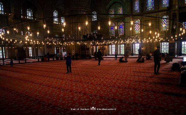 蓝色清真寺里的蓝色釉贴瓷据说耗资巨费,到后期苏丹也扛不住了,只能换了品质稍次的瓷砖补上。