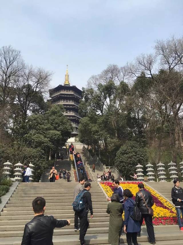 我们走出景区坐的87公交,打算去雷峰塔、苏堤,坐公交时遇到了一个司机一直让我们打他的车,还在那边说什么这个87公交一天很少几班次叭叭叭啦啦啦的,我真心讨厌这种出门在外给别人浇冷水的人,既然我已经婉拒还要说一些不好听的话来打击你,最后他刚说完87就远远驶来,要说这趟公交确实是需要等一会能有一趟车,不会像那些司机说的那么难等,请自行考虑选择,到了苏堤下车,马路对面就是雷峰塔景区门口,学生证买票半价20一张,登上雷峰塔看到的杭州风景很美,可以把西湖等显著地标尽收眼底,塔内有一些浮雕壁画,很精美,值得细细鉴赏