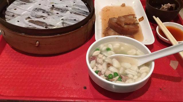 我们两个人点了宋嫂鱼羹、东坡肉、XO酱菜花、招牌豉油虾、红糖糯米糍