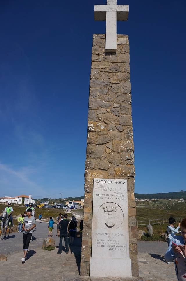 岩石角上立着一块朴素的石碑。数字表示的经度和纬度说明此地是欧洲大陆的最西端。上面铭刻着“葡萄牙的屈原”卡蒙斯的名句“陆止于此,海始于斯”