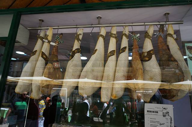 橱窗中贩卖的火腿。