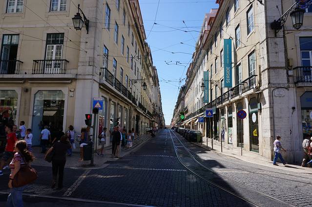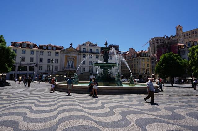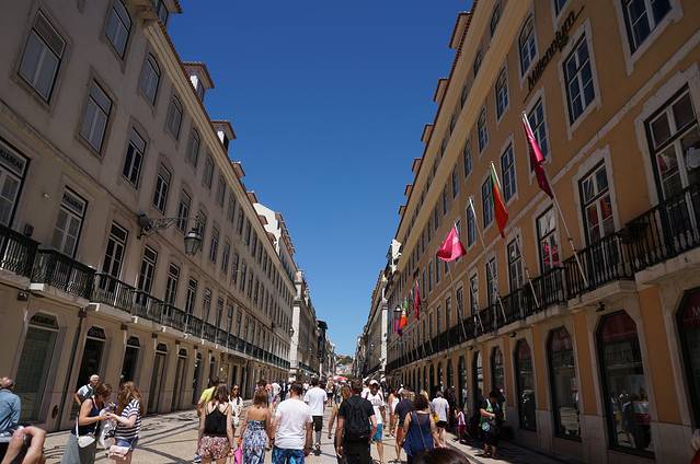 我们的大巴停在著名的罗西欧广场,下车后我们直接没有走奥古斯塔大街南下凯旋门,而是选择经过菲盖拉广场(也称无花果树广场),随性沿着一条名为Rus dos Fanqueirosd大街边逛边走。