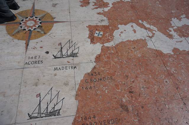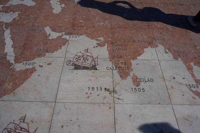 碑前的地上刻有一幅世界地图,上面刻有发现各个地方的日期。