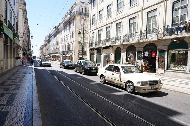 街区驶过的出租车,里斯本的公交车和出租车基本都是Benz,幸福指数很高的城市。