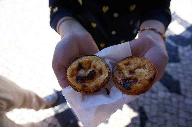 最正宗的葡式蛋挞,最正宗的吃法是在蛋挞上面撒糖霜和肉桂粉(对于中国人来说就太甜了)。相传蛋挞于18世纪由里斯本杰洛尼莫修道院的修女发明。1837年,一群修女在一次政治斗争中成了无辜的牺牲品被赶出修道院,为了生存下去不得已开了家小店,把修道院中还不太成熟的一种甜点作为主要产品,意外流传至今。