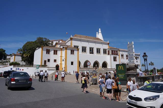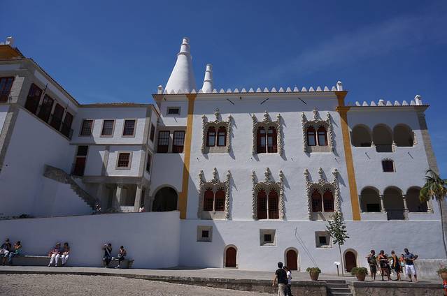 葡萄牙国王约翰一世(1385—1433年)时,对辛特拉的皇宫大兴土木,在这里建造了夏天的行宫——辛特拉宫(大致地位相当于我国的承德避暑山庄)。皇宫的门票稍贵(成人要7欧元),由于后面还有奢华的马德里王宫和阿尔汗布拉宫,当地的地陪并未推荐我们入内参观。