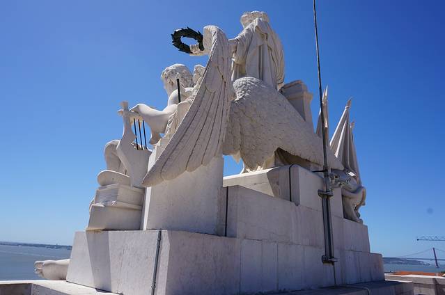 碑上刻有亨利及其它80位水手的雕像,船头站立者即为亨利,其后为其助手加玛,两旁是一些随同出发的航海家,以及葡国历史上有名的将军、传教士和科学家。