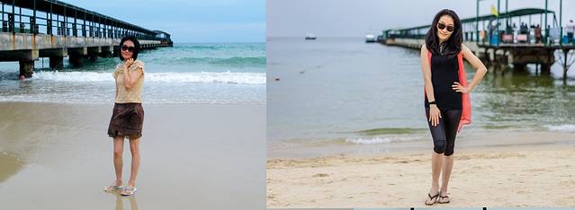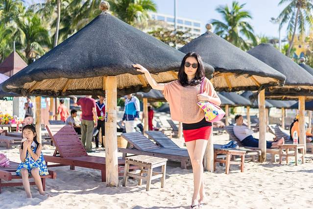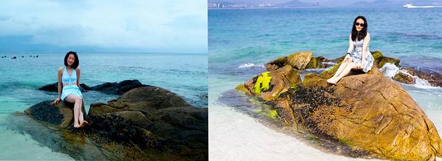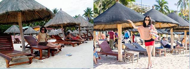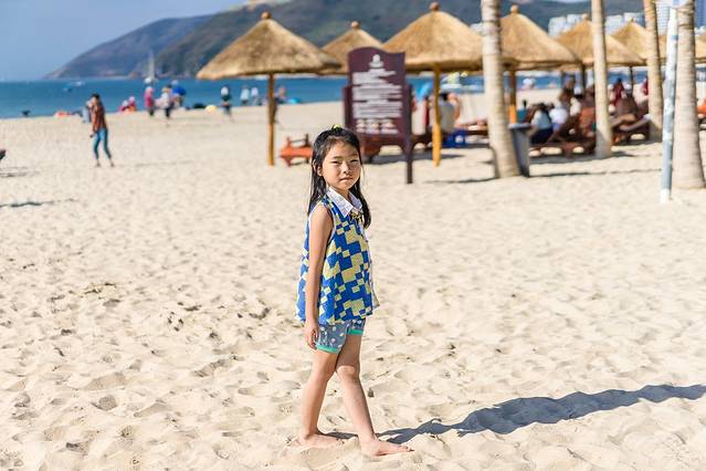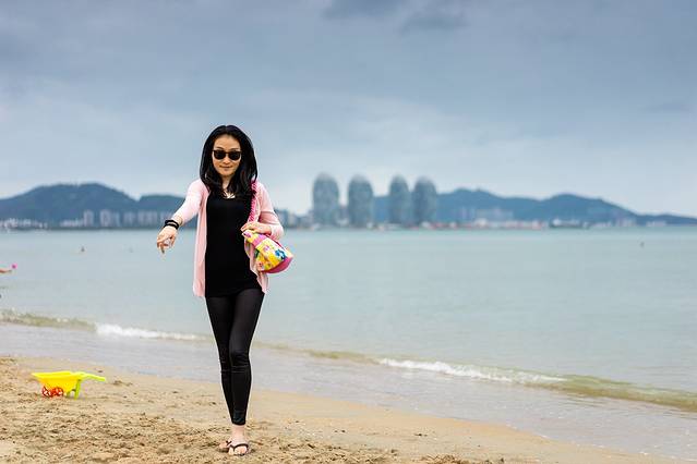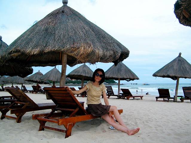 八年前我们第一次来到大东海,感觉并没有多大的变化,海水沙滩依旧,连沙滩上的篷子和躺椅似乎都保持着原样。只是周围多了一些新建起的高楼。对了,当时我们只是两个人,现在照片上还多了一个小拖油瓶。当然她对于拖油瓶的说法完全不赞同,按她的说法,是她牺牲了宝贵的游乐场时间来陪我们旅游的哟。