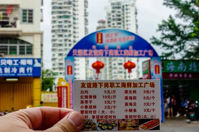 其实三亚湾也不错呀,看完三亚湾就在附近的友谊路下岗职工海鲜市场买海鲜加工,八年前我们也是来这里吃的,不过八年过去,下岗职工貌似都成了老板,那海鲜不但不便宜,还缺斤少两的,让人大失所望,还好我们心理预期本来也不高。其实这里离第一市场还算近,可能去第一市场还好一些。