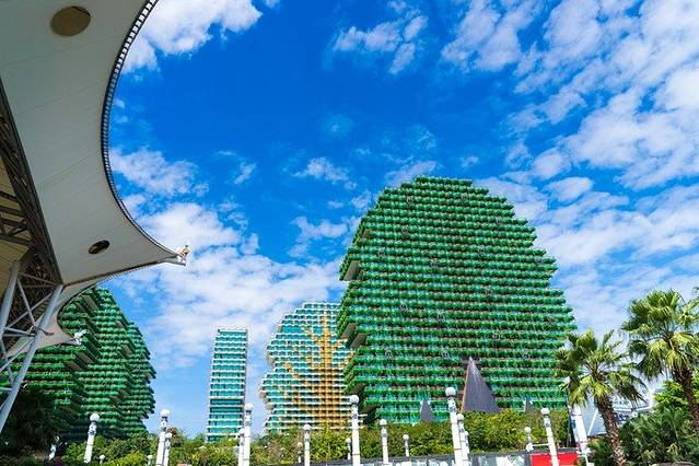 在市区里路过美丽之冠会展中心就拍一下,这几栋楼设计得挺有特色的。