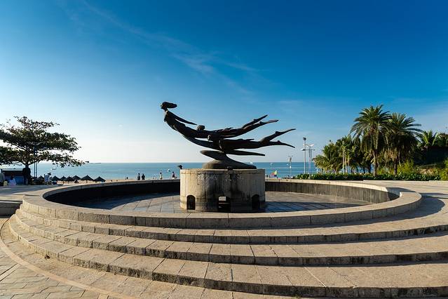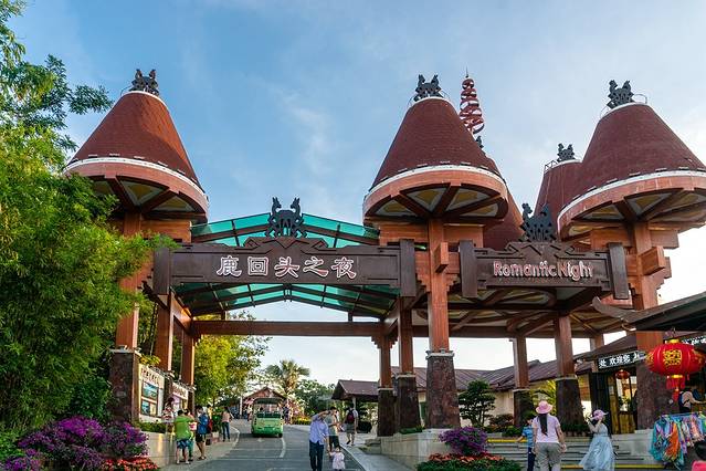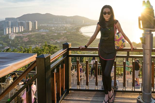 吃完照例午休,五点就开始去鹿回头公园看落日了。鹿回头公园离大东海比较近,开车十分钟,公车也方便。到了这里停车倒是要收费了,看来市区内还是不能免费呀。依旧是网上买好票进门,从门口到山顶其实并不远,电瓶车另外收费,我觉得不用花那个钱,本来公园就是让你锻炼身体的,免费我都不愿坐呀。