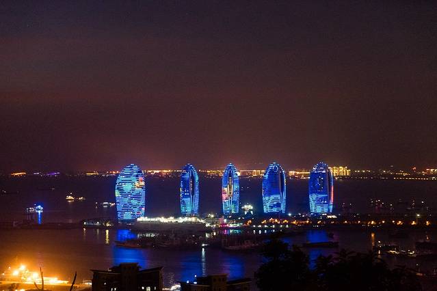 夜色下的凤凰岛也很漂亮,楼的颜色是会变的。