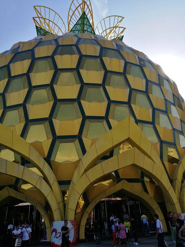 为什么叫大菠萝,看一下相片就知道了,真的是一个大菠萝呀。这里离大东海有点距离,从大东海广场那个雕像走路过去不远,大概10分钟就走到了,这里不是只有购物,还有很多家饭店,价格就比较正常了,环境也不错,其中推荐那家万岁寿司,经常有活动,味道也不错,还是很值得来吃的。