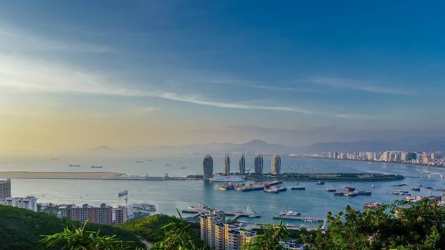 更不用说一路上并不是没有风景可看了,在半山坡可以直接看到现在三亚最高档的小区---凤凰岛,这个是一个人工岛,上面的房子都是天价,虽然是人造的,但设计得还不错,放在海湾内不但没有影响景致,反而别有风情,挺漂亮的。