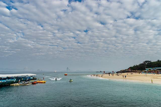 原谅我没办法拍更大面积的沙滩,因为旁边就停着一些摩托艇呀、小船之类的。