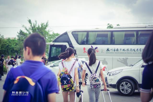 很喜欢小桃扎着马尾背着双肩包穿T恤短裤球鞋的背影,