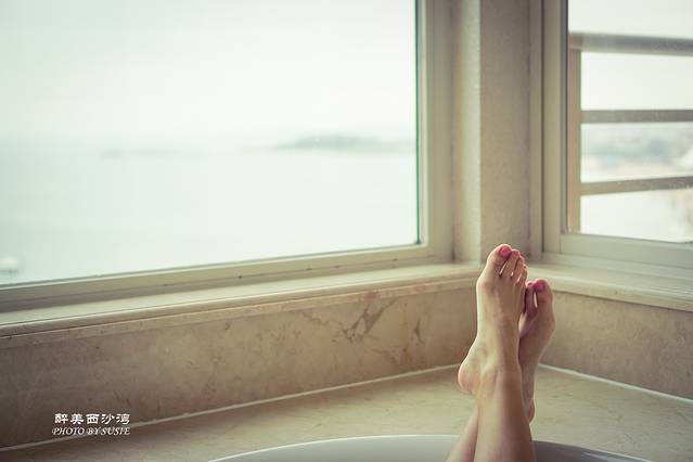 这张是小桃同学换上了泳衣,露个脚丫子假装在泡澡啦