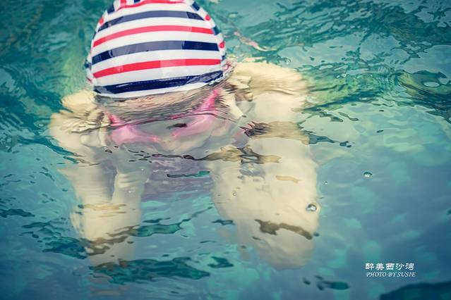 泳池的水微凉,要不停的游才不至于冷。