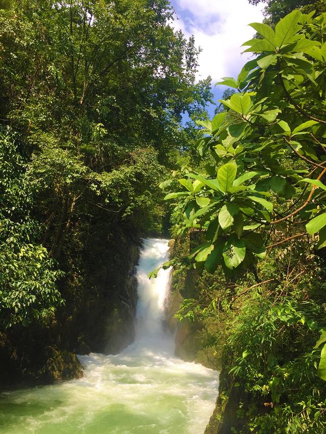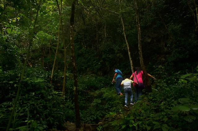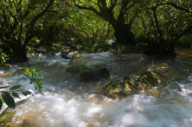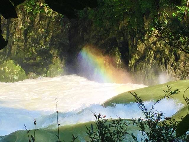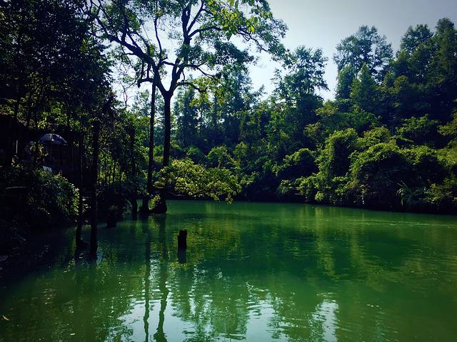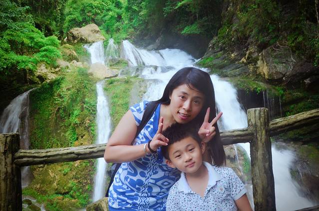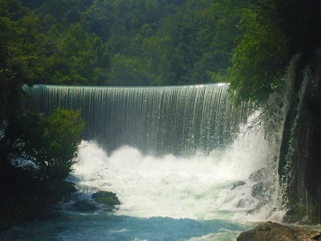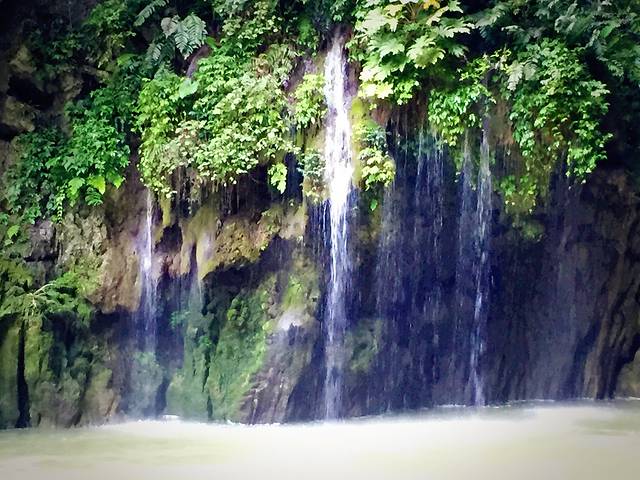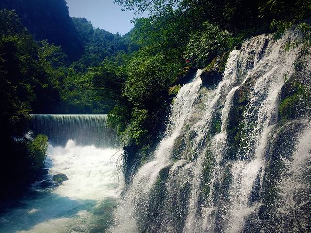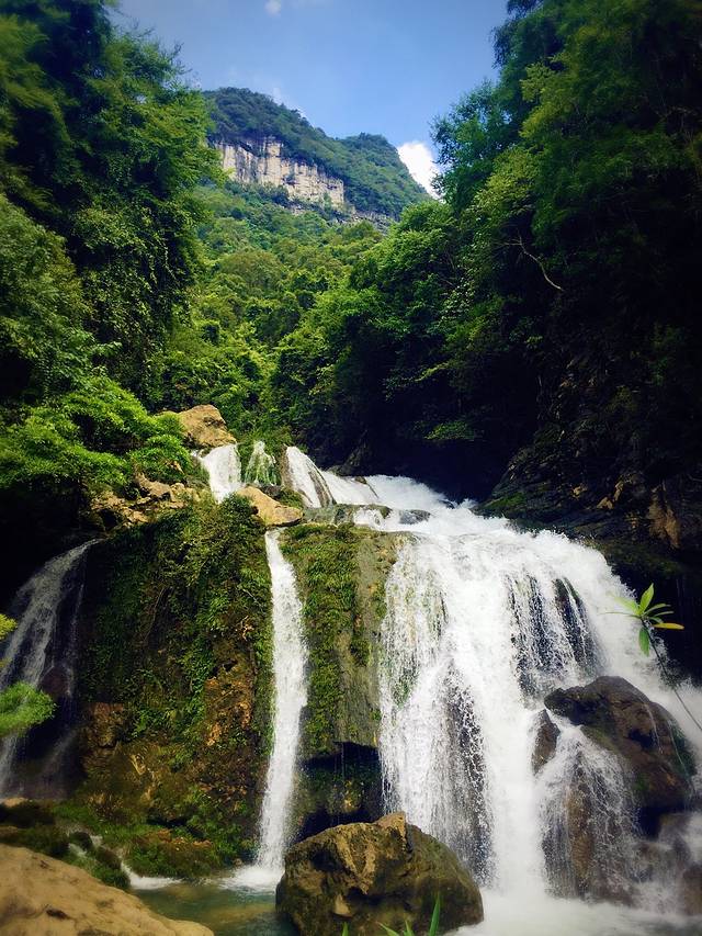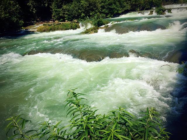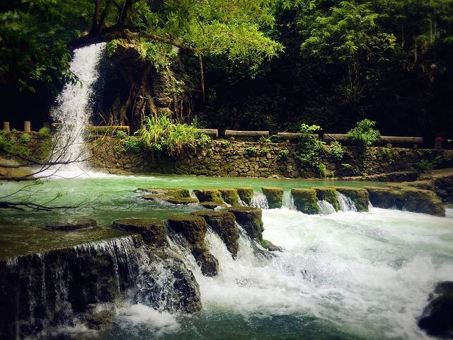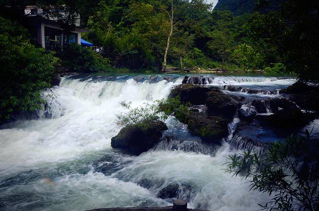 从检查站出来向右拐,大概2公里,就到了水中林了,验过门票,我们车开进景区,结果直接到了拉滩瀑布了。这里的景点都是顺流而下的一条线走下来,因此可以先在景区门口沿石阶下来到水中林,一步一步走上空穴谷(我们去那天空穴谷被封)。