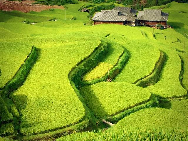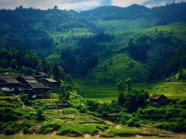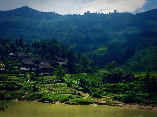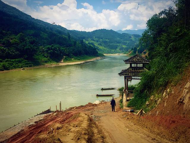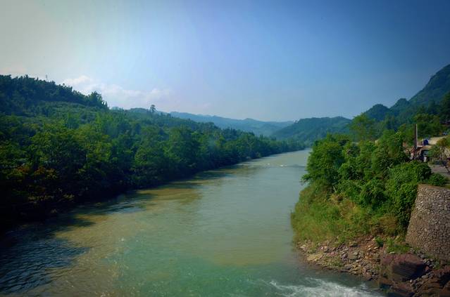 路遇一条大河,河边散落着几处农舍,如上图,觉得美得冒泡了,让司机停下来,拍照。路边一个大爷问我有什么好拍的啊,这么个穷山沟。也许从小在山里长大的人们真的是审美疲劳了。