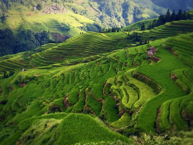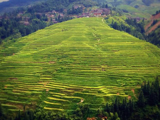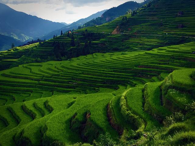 大约下午4点多,我们到了加榜附近。车先开到加车村,一进村有一个大牌坊。当看到第一片梯田的时候,我就被震撼了,下了车狂拍起来,后来再往里走,发现惊喜都在后面。