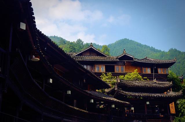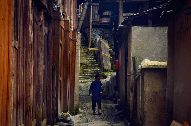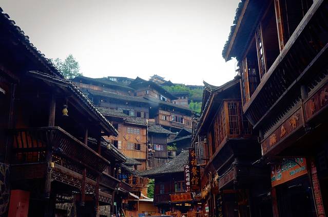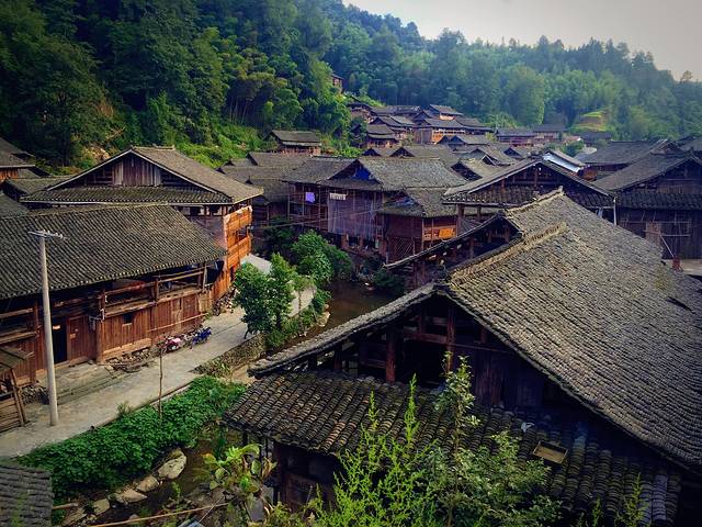 如果人处在寨中,望着傍山而建的木楼,那种层叠感很强烈,是拍照的好地方。