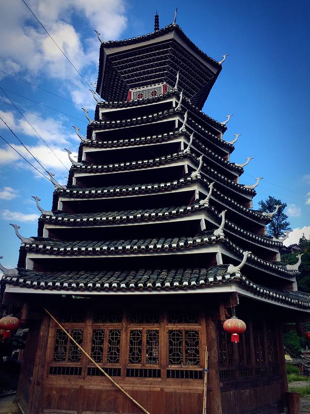 大利侗寨有一个属于侗寨特有的塔,村口就能看到,很壮观。