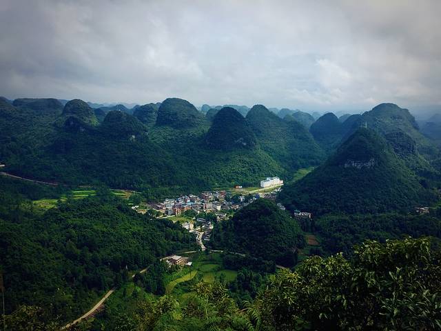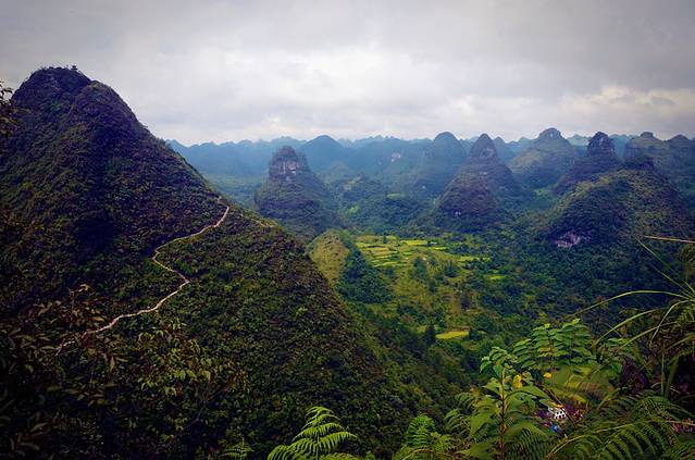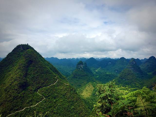 经过大约30分钟,终于登上观景台的一座亭子里了,观景角度还不错。这茂兰的山,典型的喀斯特环境,山形奇奇怪怪,从这个角度看,非常想菲律宾薄荷岛的巧克力山,但她比巧克力山秀美,多姿。