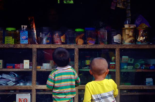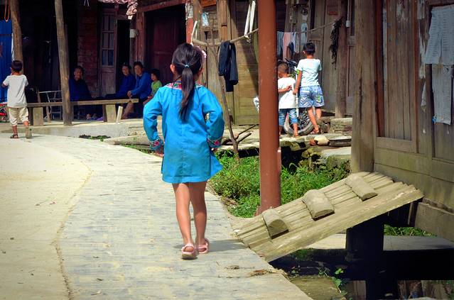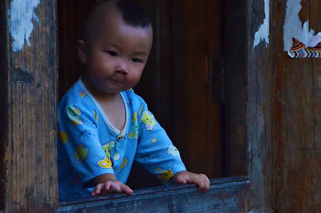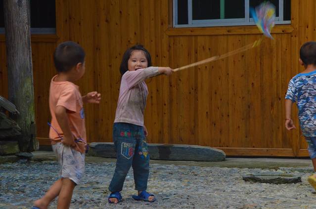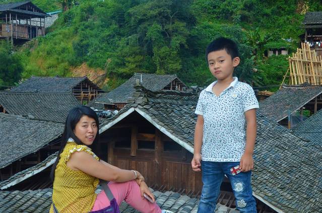 这是在宰荡村上寨风雨亭遇到的小朋友,分给他糖吃,不好意思要。