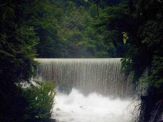 卧龙潭瀑布,就像一把梳子横亘在山间。