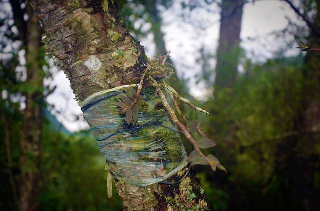 下山后半段,我们走了另一条路,遇到有村民种植的石斛,导游说这东西非常贵。他是接种在树上的。