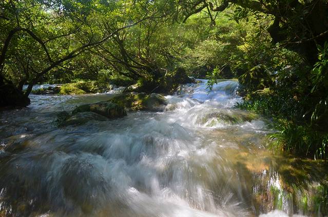 建议水上森林上段、68级跌水瀑布至小七孔段徒步,景色非常美。