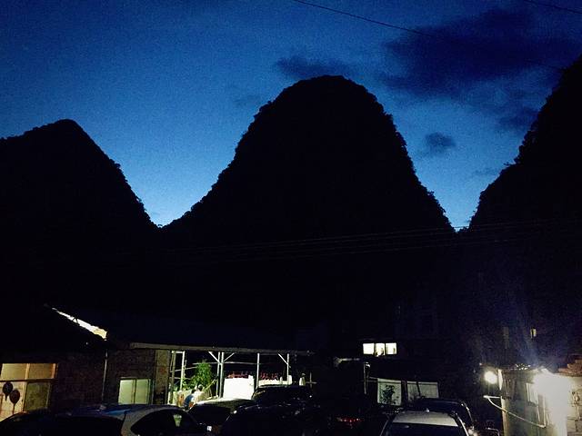 农家乐门口夜晚和白天的对比。他们这个小村子很小,可是地势太绝了。门口10米,既是一条地下暗河光顾,水即清澈又清凉。水从河里引出来,水龙头24小时开着,源于自然,回归自然。