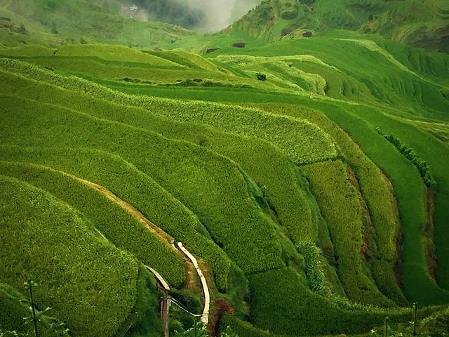 这些是加车村至党扭村沿途拍下的梯田。我儿子说,这有什么好看的,就像一块奶酪被啃了一口,呵呵。